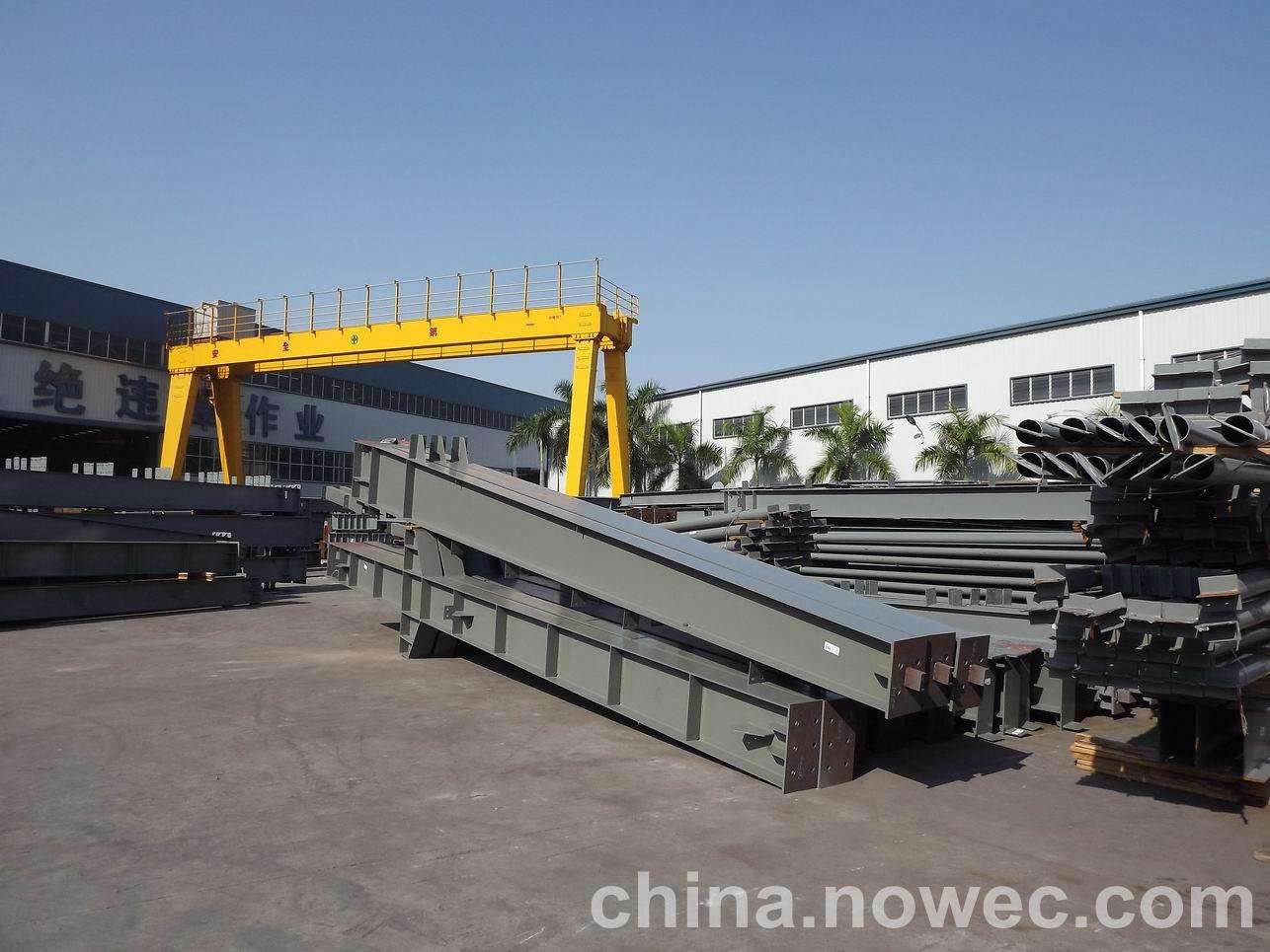 条状单元一般沿长跨方向分割,其宽度约为1~3个网格,其长度为l2或l2/2(l2为短跨跨距)。块状单元一般沿咸宁网架平面纵横向分割成矩形或正方形单元。每个单元的重量以现有起重机能胜任为准。条(块)与条(块)之间可以直接拼装,也可空一网格在高空拼装。由于条(块)状单元是在地面拼装,因而高空作业量较高空散装法大为减少,拼装支架也减少很多,又能充分利用现有起重设备,故较经济。这种安装方法适用于分割后网架的钢度和受力状况改变较小的各类中小型网架,如两向正交正放四角锥、正放抽空四角锥等网架。